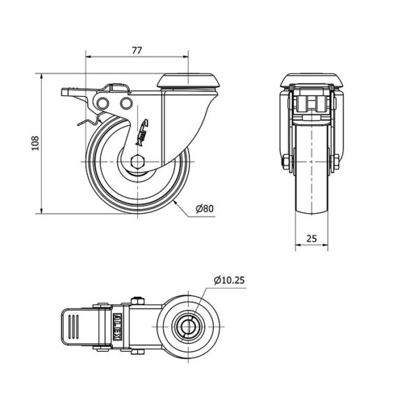 Rueda polipropileno-plastico giratoria con freno Alex diametro 80 mm. modelo 2-3067