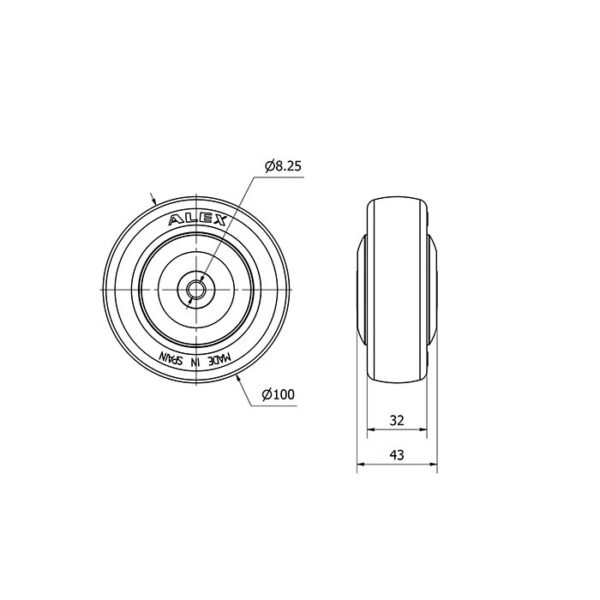 Rueda poliuretano aro suelto Alex diametro 100 mm. modelo 2-1100