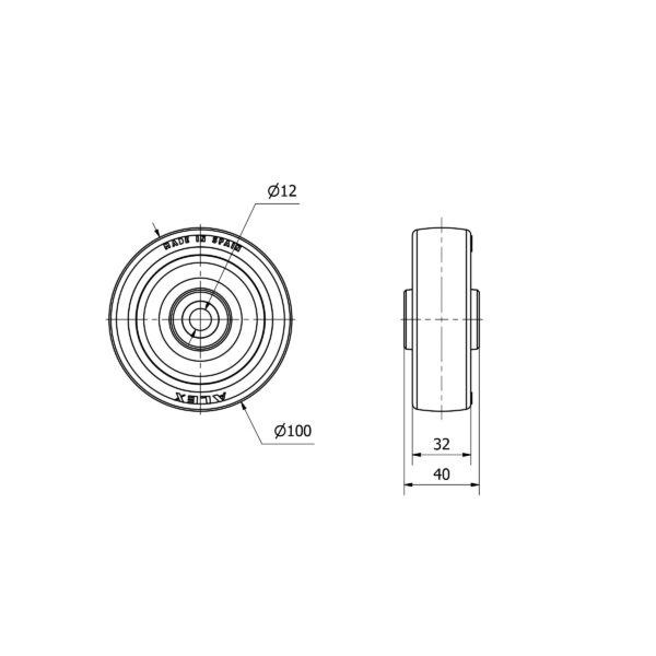 Rueda poliuretano aro suelto Alex diametro 100 mm. modelo 2-3494 EAN 8422202234946