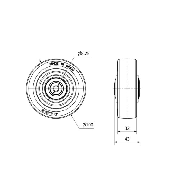 Rueda poliuretano aro suelto Alex diametro 100 mm. modelo 2-4196 EAN 8422202241968