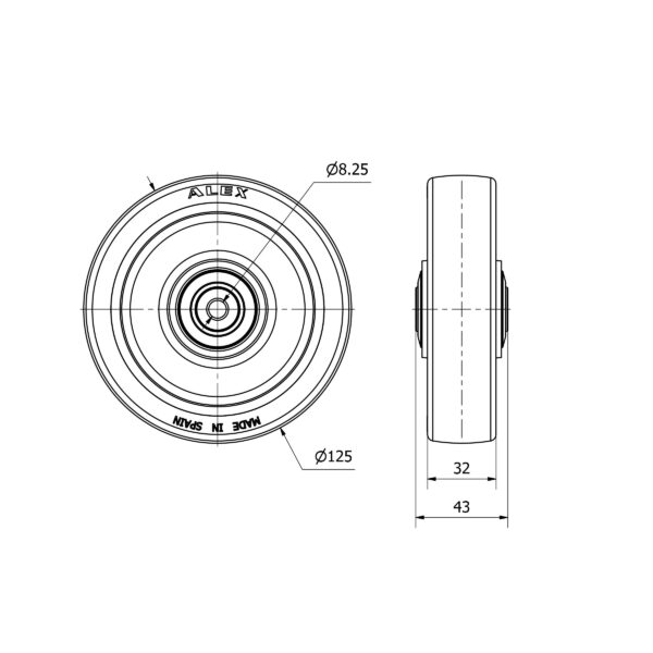 Rueda poliuretano aro suelto Alex diametro 125 mm. modelo 2-4197 EAN 8422202241975
