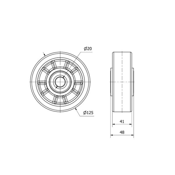 Rueda poliuretano aro suelto Alex diametro 125 mm. modelo 2-4520