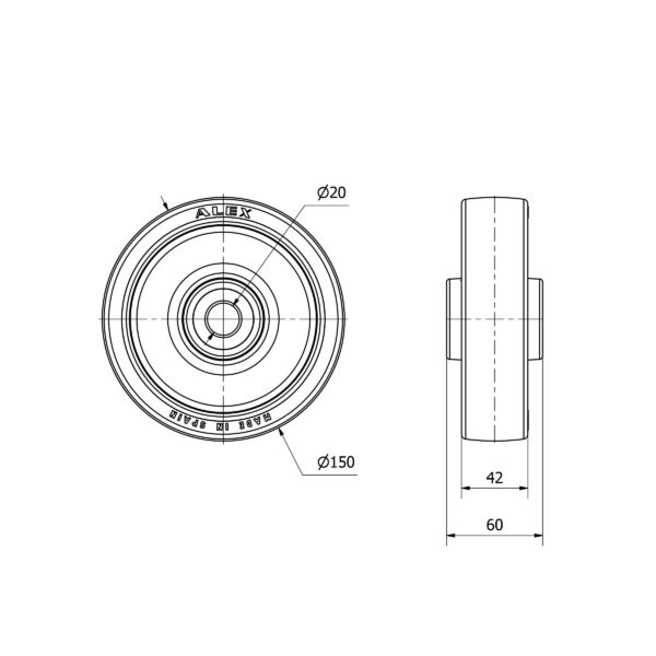 Rueda poliuretano aro suelto Alex diametro 150 mm. modelo 2-3445