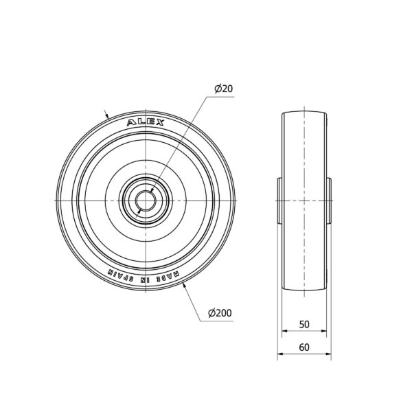 Rueda poliuretano aro suelto Alex diametro 200 mm. modelo 2-3444