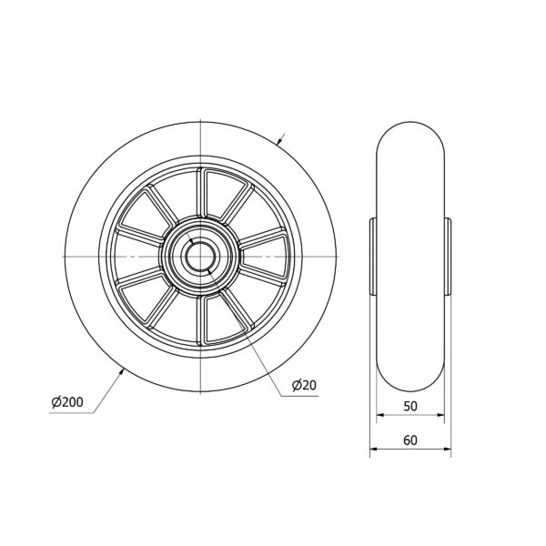 Rueda poliuretano aro suelto Alex diametro 200 mm. modelo 2-3993 EAN 8422202239934