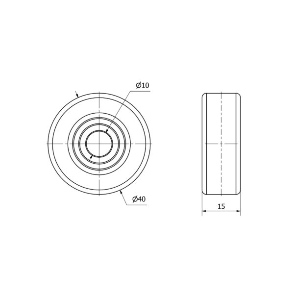Rodamiento de bolas recubierto de poliuretano vulcanizado. Color naranja. Rango de temperatura -30º + 80º.
