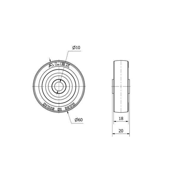Rueda poliuretano aro suelto Alex diametro 60 mm. modelo 2-2561