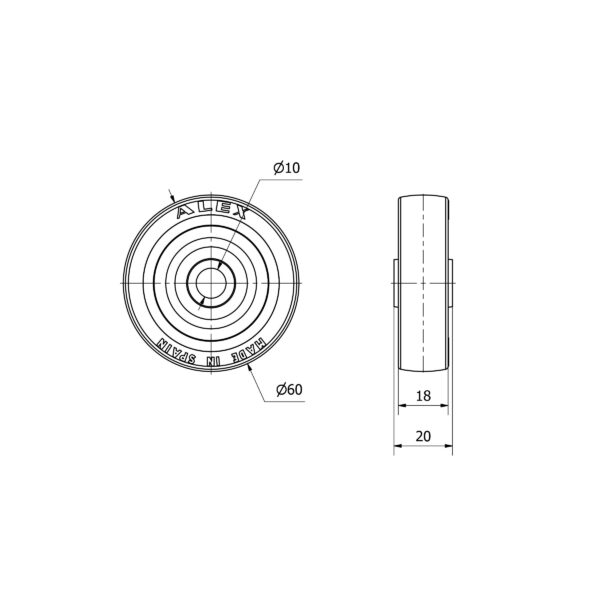 Rueda poliuretano aro suelto Alex diametro 60 mm. modelo 2-3511