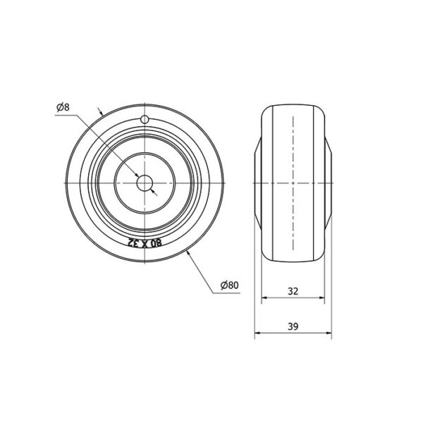 Rueda poliuretano aro suelto Alex diametro 80 mm. modelo 2-1602