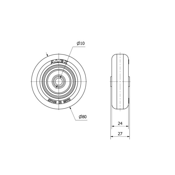 Rueda poliuretano aro suelto Alex diametro 80 mm. modelo 2-2477