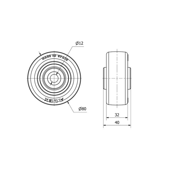 Rueda poliuretano aro suelto Alex diametro 80 mm. modelo 2-2959