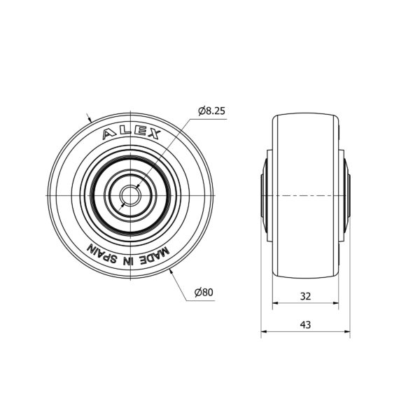 Rueda poliuretano aro suelto Alex diametro 80 mm. modelo 2-4195 EAN 8422202241951
