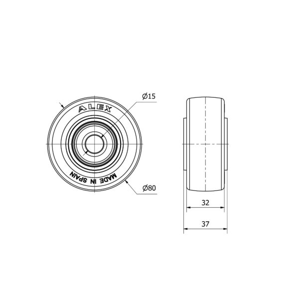 Rueda poliuretano aro suelto Alex diametro 80 mm. modelo 2-4629 EAN 8422202246291