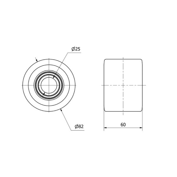 La serie de aros Alex KI son aros de poliuretano inyectado de color marrón, con cojinete de bolas. Rango de temperatura: -20ºC. a +80ºC.