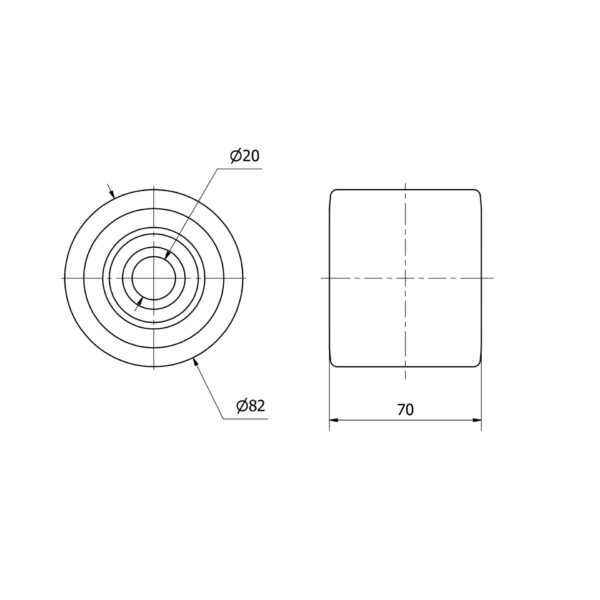 La serie de aros Alex KI son aros de poliuretano inyectado de color marrón, con cojinete de bolas. Rango de temperatura: -20ºC. a +80ºC.