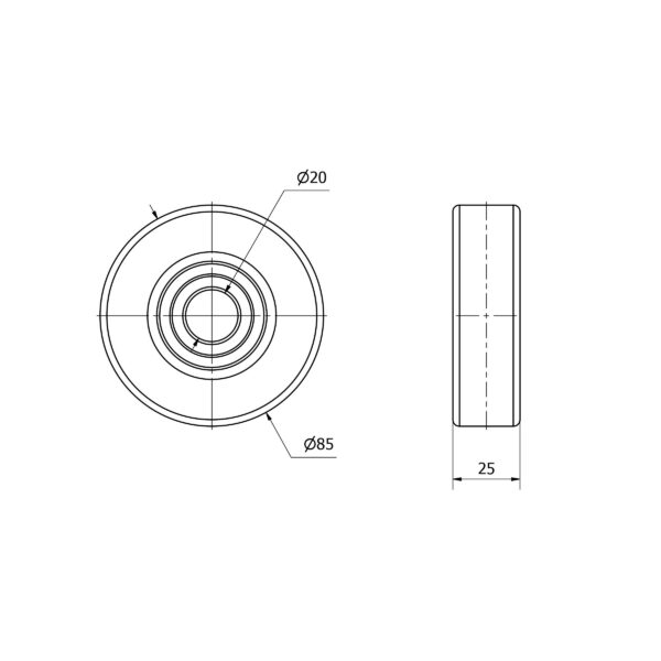 Rueda poliuretano aro suelto Alex diametro 85 mm. modelo 2-4664