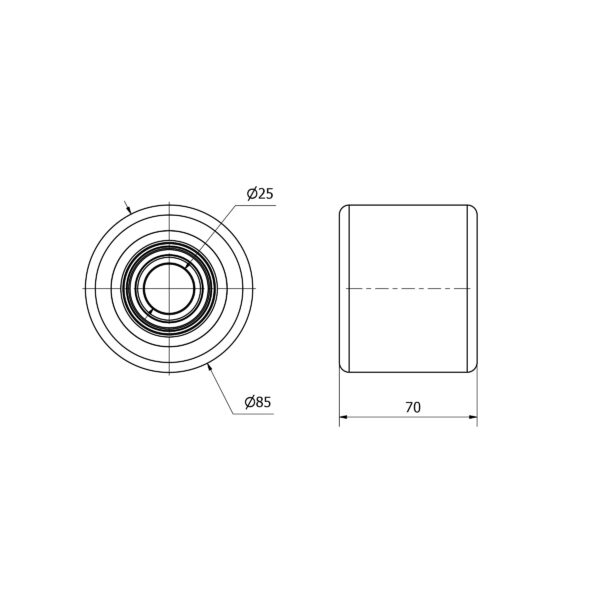La serie de aros Alex VN son aros de poliuretano vulcanizado de color naranja, con cojinete de bolas. Rango de temperatura: -20ºC. a +60ºC.
