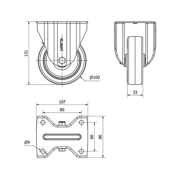 Rueda poliuretano fija Alex diametro 100 mm. modelo 2-1723