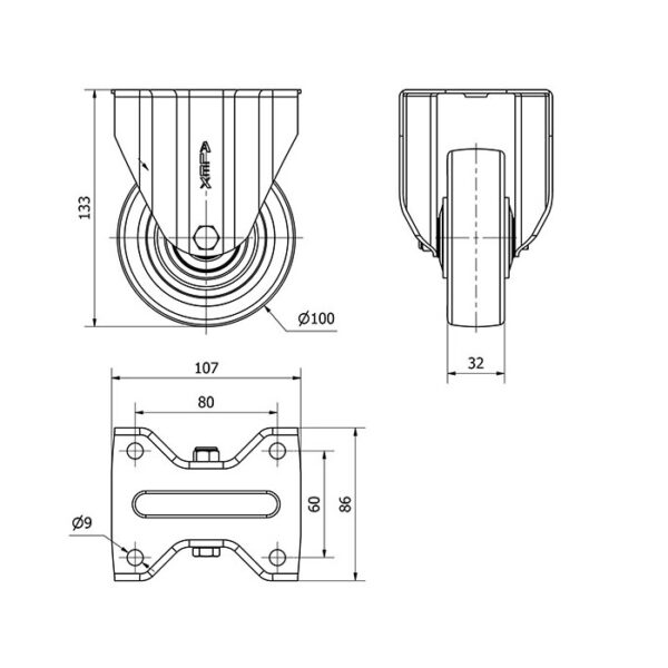 Rueda poliuretano fija Alex diametro 100 mm. modelo 2-4229