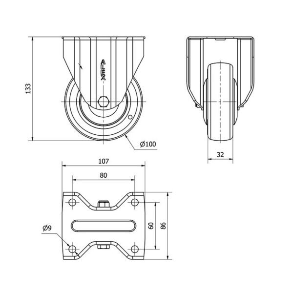 Rueda poliuretano fija Alex diametro 100 mm. modelo 2-4713