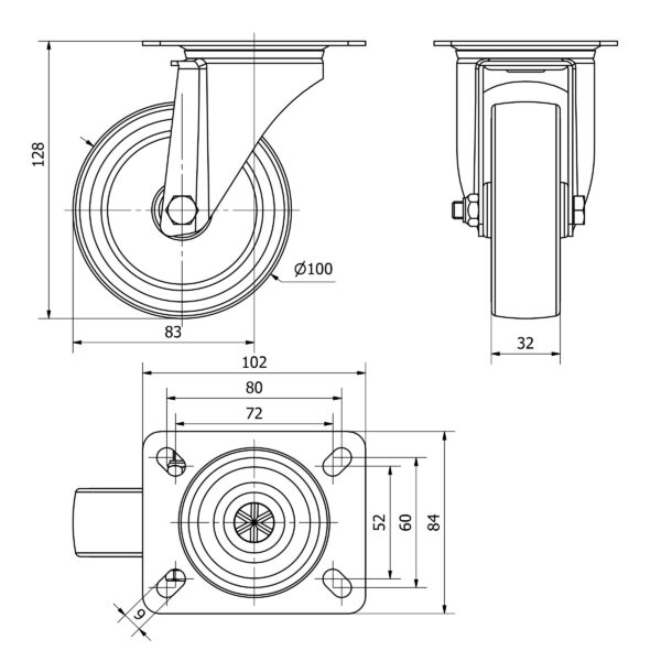 Rueda poliuretano fija Alex diametro 100 mm. modelo TW0212 EAN 8422202002125