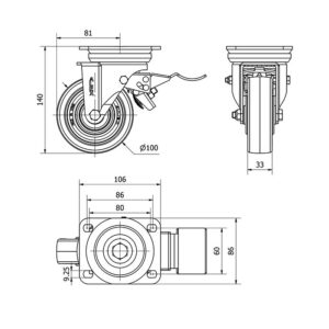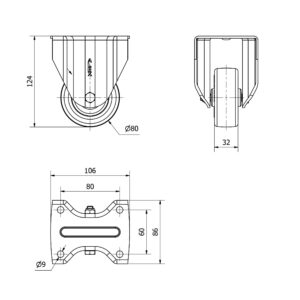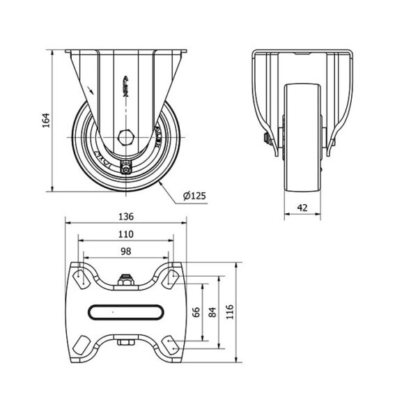 Rueda poliuretano fija Alex diametro 125 mm. modelo 2-0314