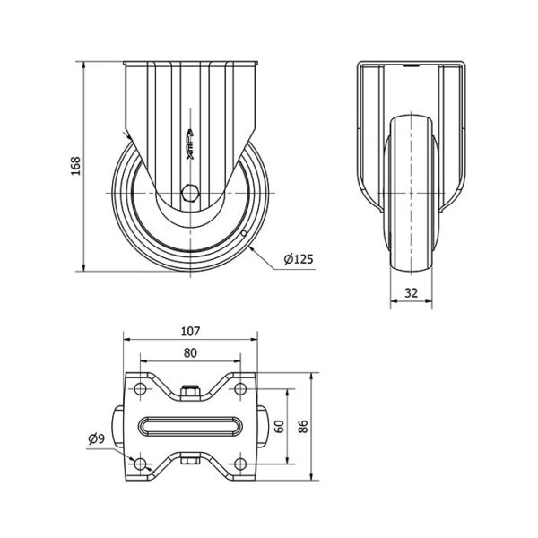 Rueda poliuretano fija Alex diametro 125 mm. modelo 2-1590