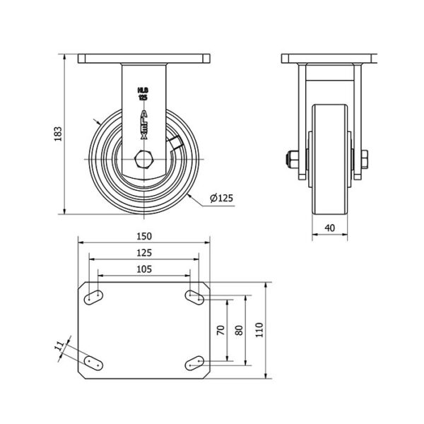 Rueda poliuretano fija Alex diametro 125 mm. modelo 2-1757