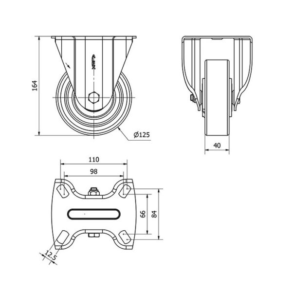 Rueda poliuretano fija Alex diametro 125 mm. modelo 2-2056