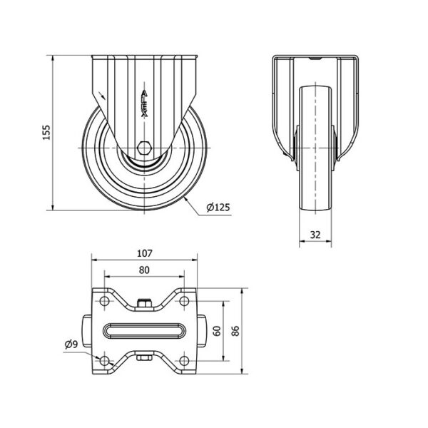 Rueda poliuretano fija Alex diametro 125 mm. modelo 2-4217