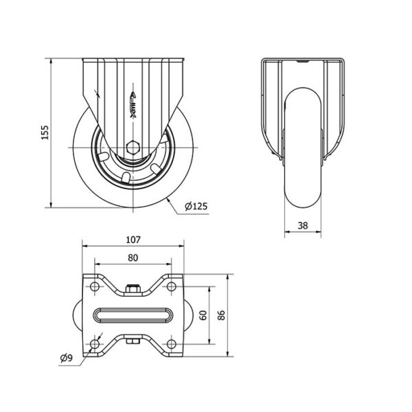 Rueda poliuretano fija Alex diametro 125 mm. modelo 2-4814