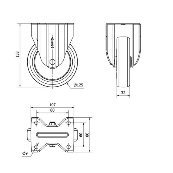 Rueda poliuretano fija Alex diametro 125 mm. modelo 2-4954