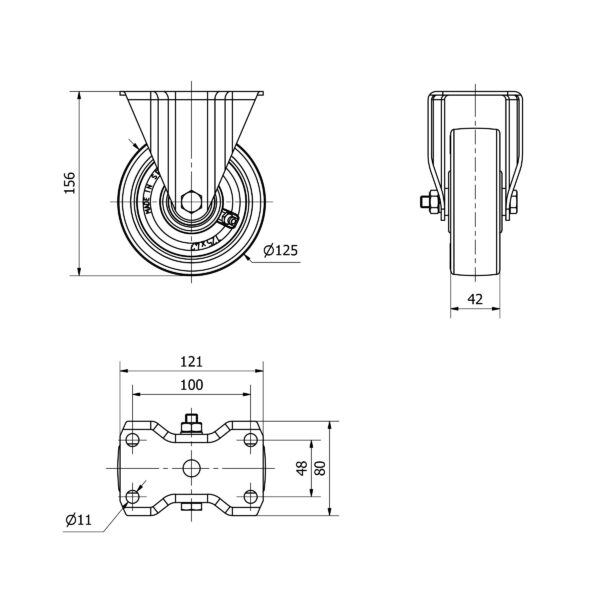 Rueda poliuretano fija Alex diametro 125 mm. modelo 4-0231