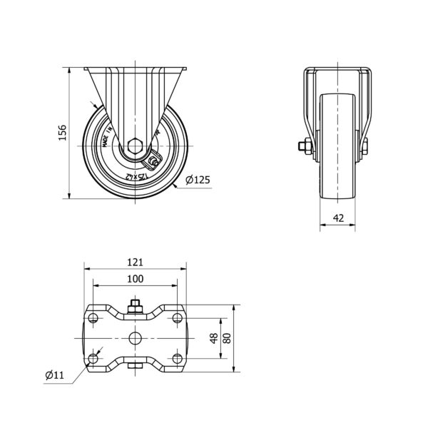 Rueda poliuretano fija Alex diametro 125 mm. modelo 4-0265