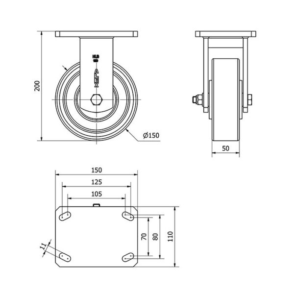 Rueda poliuretano fija Alex diametro 150 mm. modelo 2-1758