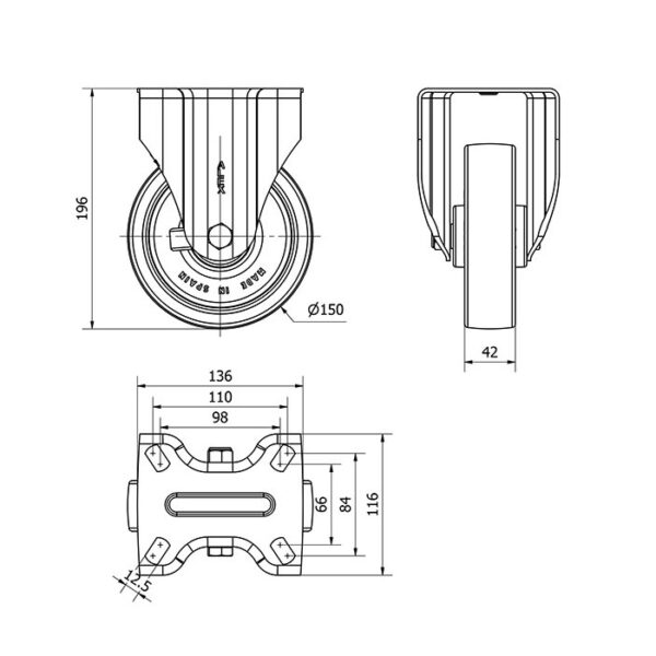 Rueda poliuretano fija Alex diametro 150 mm. modelo 2-3471