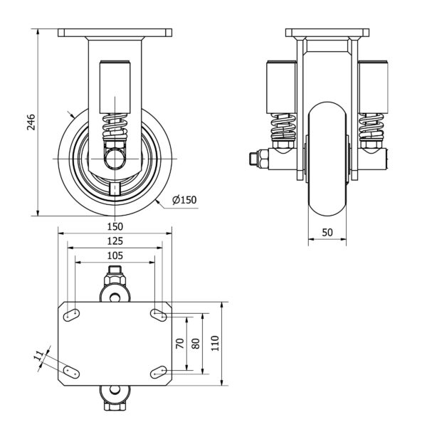 Rueda poliuretano fija Alex diametro 150 mm. modelo 2-3544