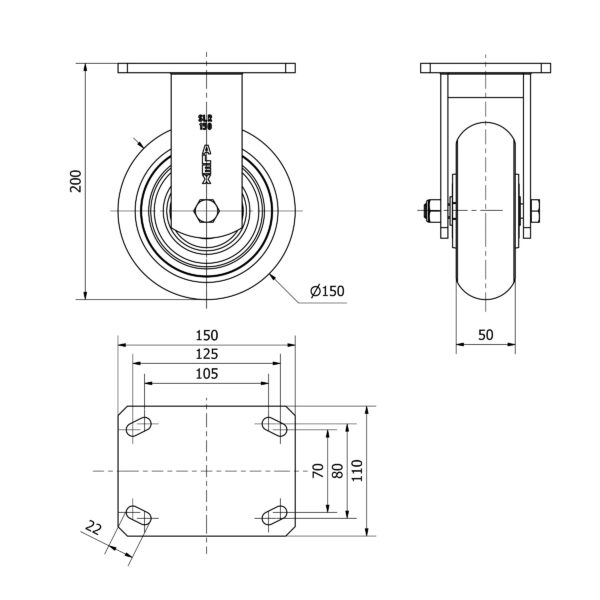 Rueda poliuretano fija Alex diametro 150 mm. modelo 2-3726