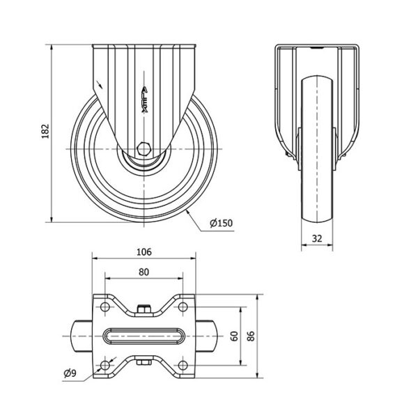 Rueda poliuretano fija Alex diametro 150 mm. modelo 2-4271