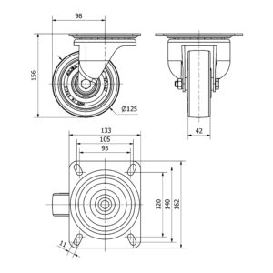 Rueda poliuretano fija Alex diametro 150 mm. modelo 4-0268