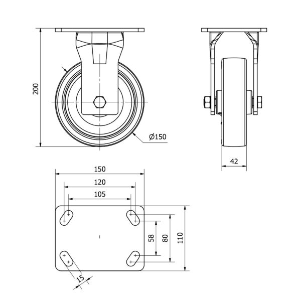 Rueda poliuretano fija Alex diametro 150 mm. modelo 4-0936