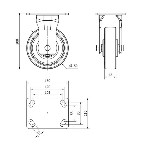 Rueda poliuretano fija Alex diametro 150 mm. modelo 4-0938