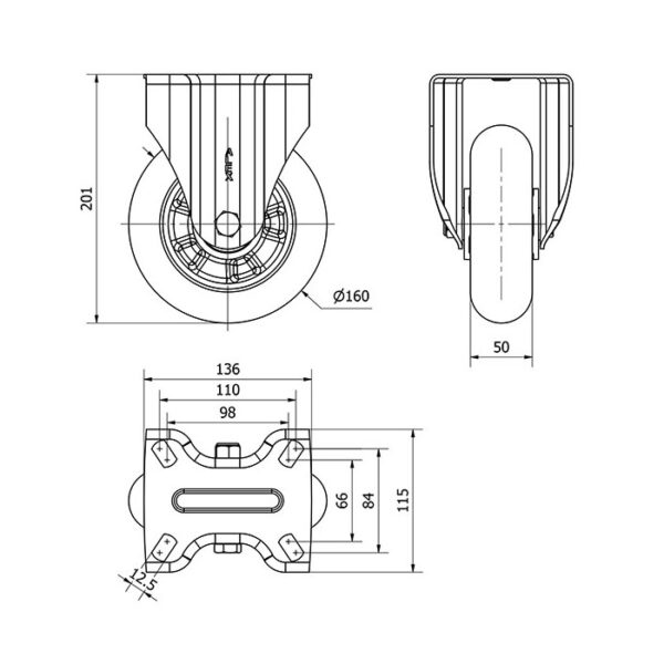 Rueda poliuretano fija Alex diametro 160 mm. modelo 2-3971