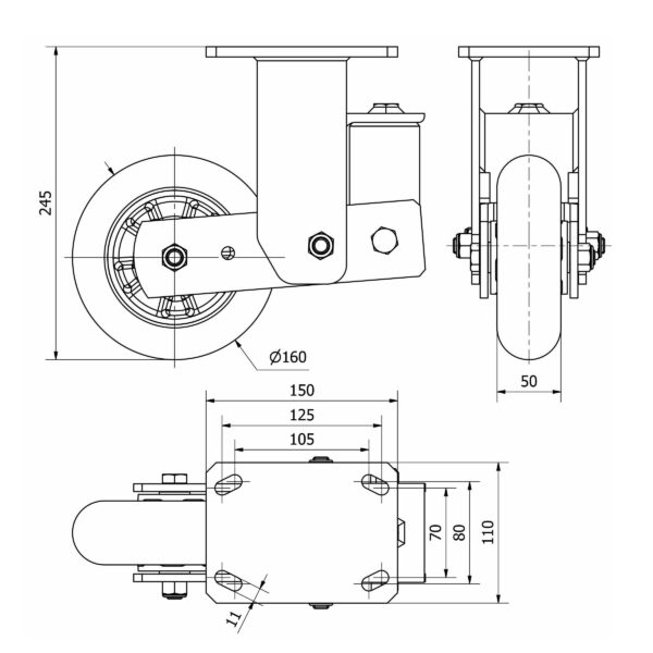 Rueda poliuretano fija Alex diametro 160 mm. modelo 2-4054