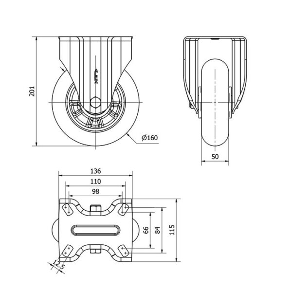 Rueda poliuretano fija Alex diametro 160 mm. modelo 2-4389