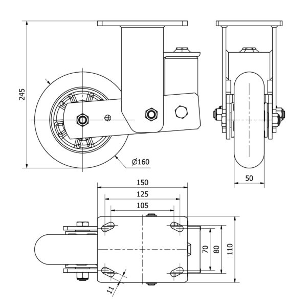 Rueda poliuretano fija Alex diametro 160 mm. modelo 2-4401