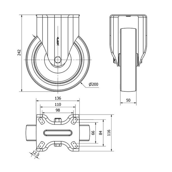 Rueda poliuretano fija Alex diametro 200 mm. modelo 2-2365