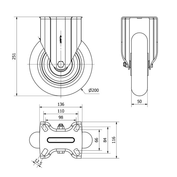 Rueda poliuretano fija Alex diametro 200 mm. modelo 2-3531