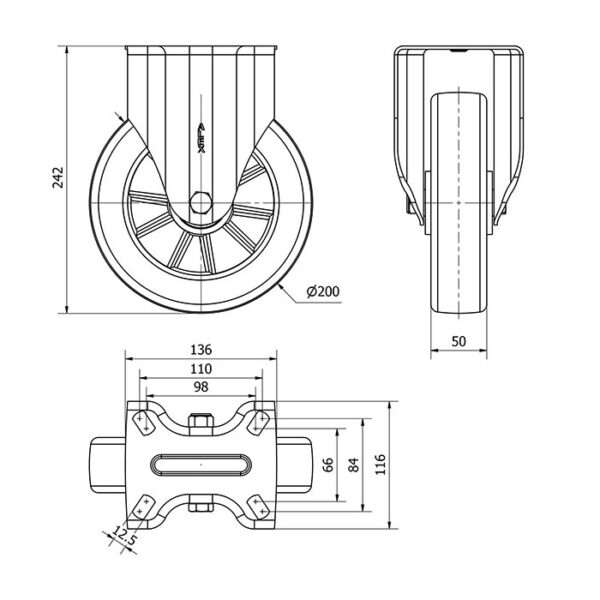 Rueda poliuretano fija Alex diametro 200 mm. modelo 2-3693