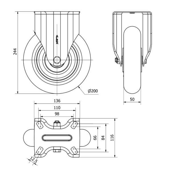 Rueda poliuretano fija Alex diametro 200 mm. modelo 2-3862